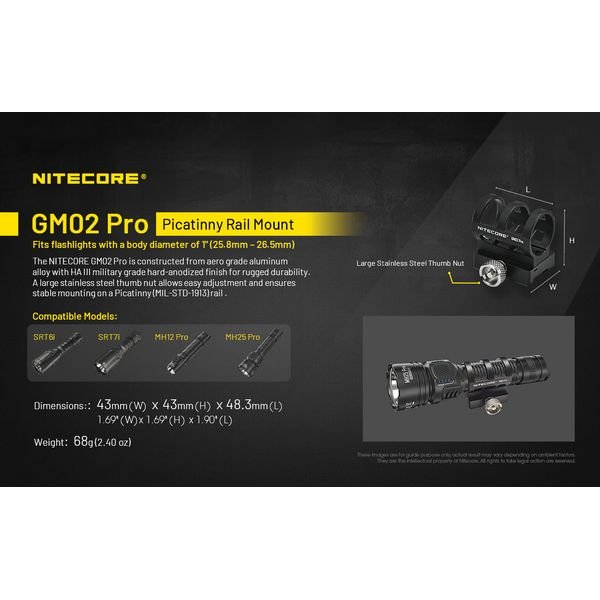 Παραδείγματα φακών NITECORE που ταιριάζουν: SRT6i , SRT7i, MH12Pro, MH25Pro