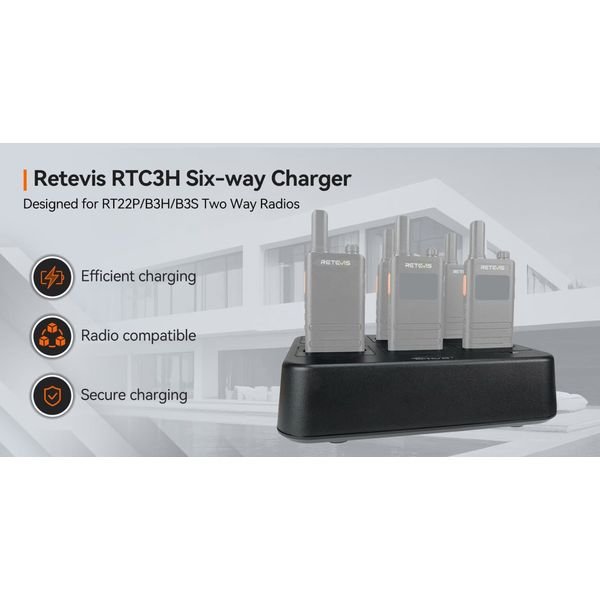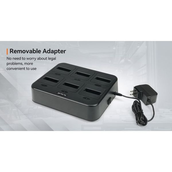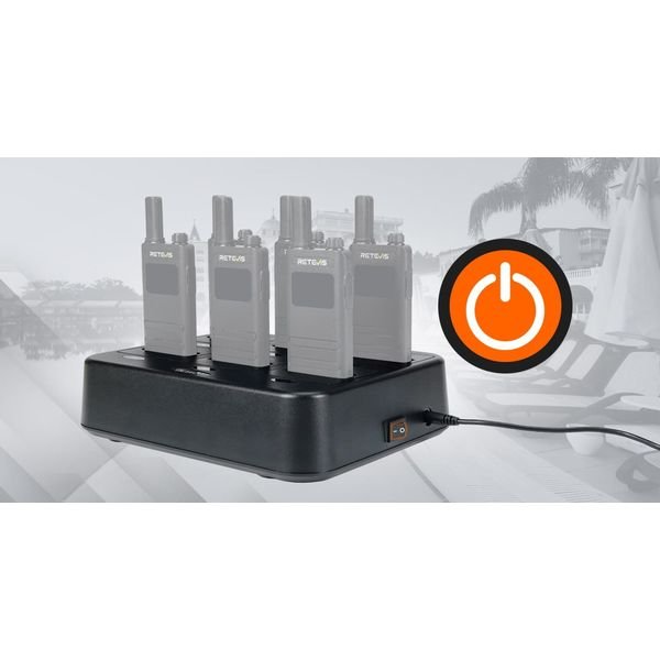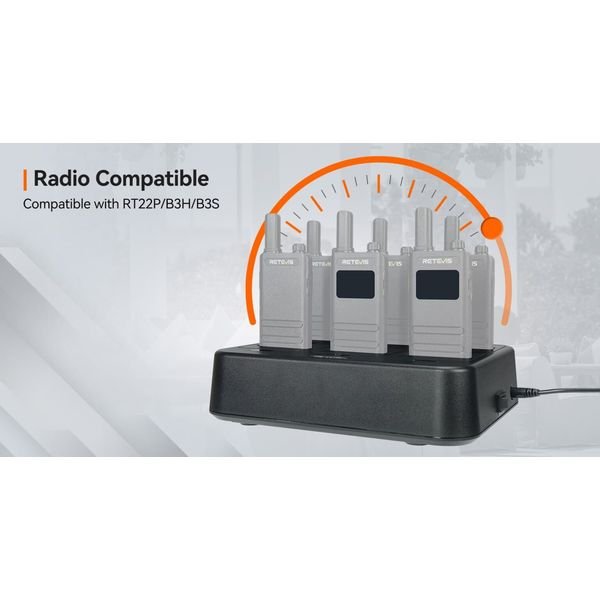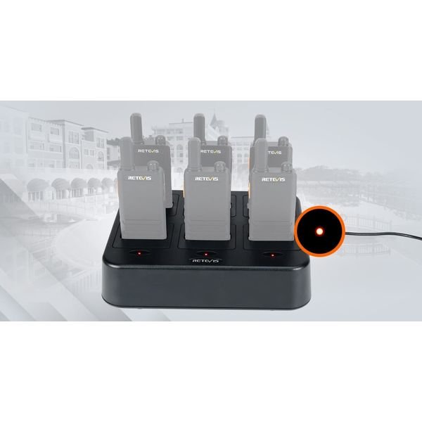 Επίσης, υποστηρίζει τη φόρτιση 6Pcs Retevis RT22P/RT622P/B3H/B63H/B3S/B63S walkie talkies χωρίς άδεια. βελτιώνοντας σημαντικά την αποτελεσματικότητα της φόρτισης για ομαδική εργασία