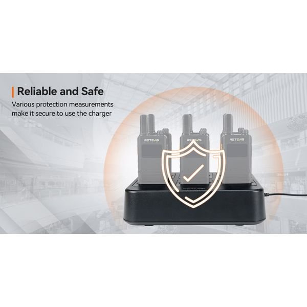 Ο φορτιστής 6 δρόμων περιλαμβάνει προστασία από υπέρταση/υπερένταση/υπερθέρμανση, η οποία θα σας βοηθήσει να χρησιμοποιήσετε αυτόν τον αμφίδρομο ραδιοφωνικό φορτιστή έξι δρόμων με ασφάλεια.