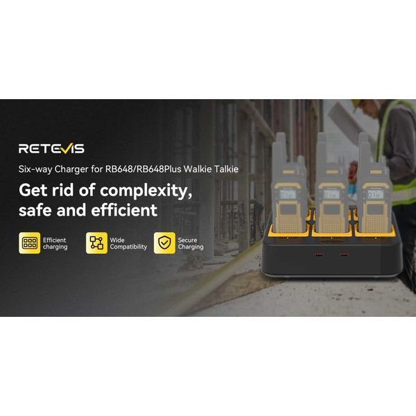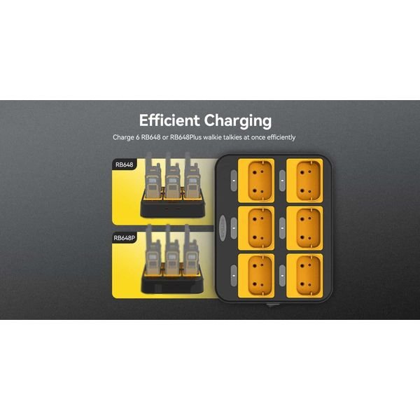Η αποδοτική φόρτιση επιτρέπει σε έναν φορτιστή 6 μονάδων να φορτίζει 6 ασυρμάτους Retevis RB648 PMR446  ή ασυρμάτους Retevis RB648P UHF υψηλής ισχύος για μεγαλύτερη αποδοτικότητα φόρτισης.