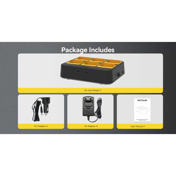 Ο φορτιστής Retevis RTC48P είναι ένας πολυφορτιστής έξι μονάδων.