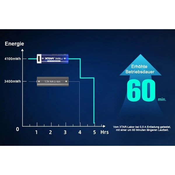 4 Mπαταρίες XTAR AA 1.5V Li-Ion 2450mAh – USB-C – με σταθερή τάση και ένδειξη