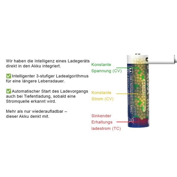 Σταθερή τάση 1,5 V χάρη στην ενσωματωμένη ρύθμιση – αυτή η μπαταρία ιόντων λιθίου είναι ιδανική για συσκευές που βασίζονται σε σταθερή τάση και ένδειξη αλλαγής μπαταρίας, όπως ραδιόφωνα, μοντέλα τηλεχειριστηρίου ή ευαίσθητα ηλεκτρονικά που έχουν προβλήματα με μπαταρίες NiMH ή εξασθενημένες αλκαλικές μπαταρίες.